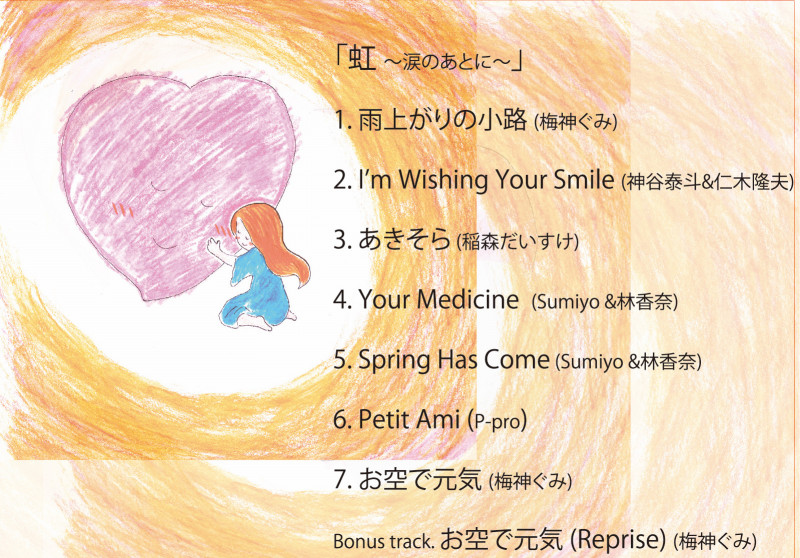 フィドラーぐみが1stアルバムをリリースしました。タイトル「虹 〜涙のあとに〜」の通り、このアルバムにはフィドラーぐみの辛かったり嬉しかったりした経験と、そこから得た考え方、生き方などが詰まってます。それでいて聴いていて少しも重くない、心地よい響きと優しいぐみの語りかけるようなフィドルと歌声。なぜか和んでしまう不思議な力に元気をもらえる、そんなアルバムに仕上がっています。
